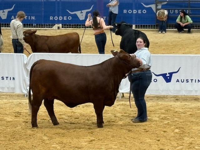 Congratulations to our senior, JaeLee Landolt, whose Santa Gertrudis heifer earned first in class at Rodeo Austin last Thursday!